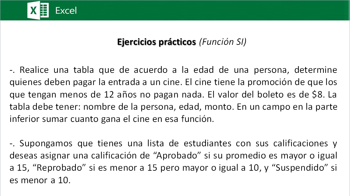 | | Funcion SI (Ejercicios) |